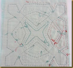 9i – the cut paper design. 9j – the back of the sample showing that one unit of the design was used but with extra stitching added around the unit.